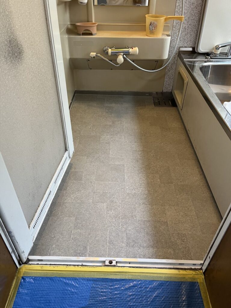 システムバスの床タイルがめくれてきたので、何か修繕の方法はないだろかとのご相談でした。